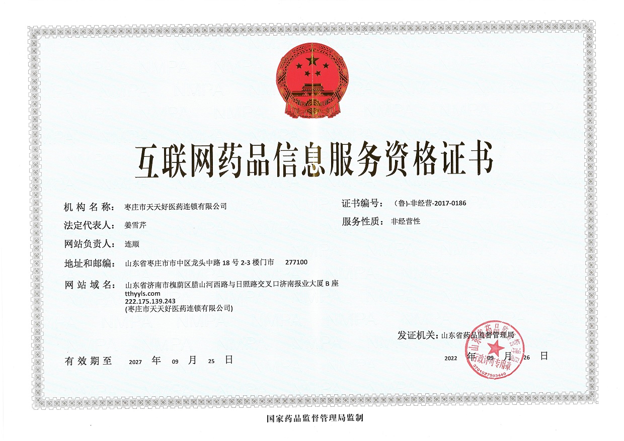 你好,歡迎訪問棗莊市天天好醫藥連鎖有限公司官網!